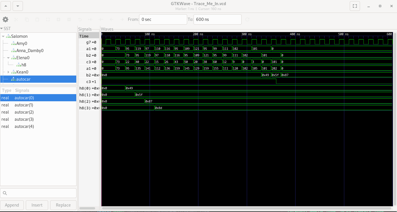 simInst.run_sim(170)The validation logic is performed in the time_to_see function. On each rising clock edge, the result of block i is stored in bit i of the little_bigger_box signal. The time_to_see function then checks that little_bigger_box is 255, i.e. that each bit is set to 1.