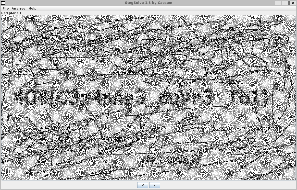 java -jar stegsolve.jarWe can open the image and walk through the different channels until we see a hidden message: