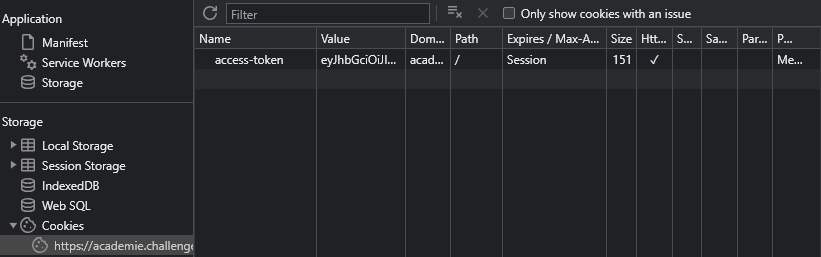 When authenticating to a web server, the natural question to ask is: What is the authentication method ? The Most common method is using cookies, so we check them out:
